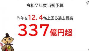 2月21日記者会見にて令和7年度予算案「好循環を次代につなぐ集大成予算」を始め3月議会に提案する議案を発表しました。私の2期目最終年度における集大成と位置付けています。