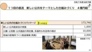 令和7年度予算案の重点項目について、2回目は三つ目の柱「市民と交流人口・関係人口の相互発展」と一つ目の底流「新しい公共をテーマとした仕組みづくり」についてです。