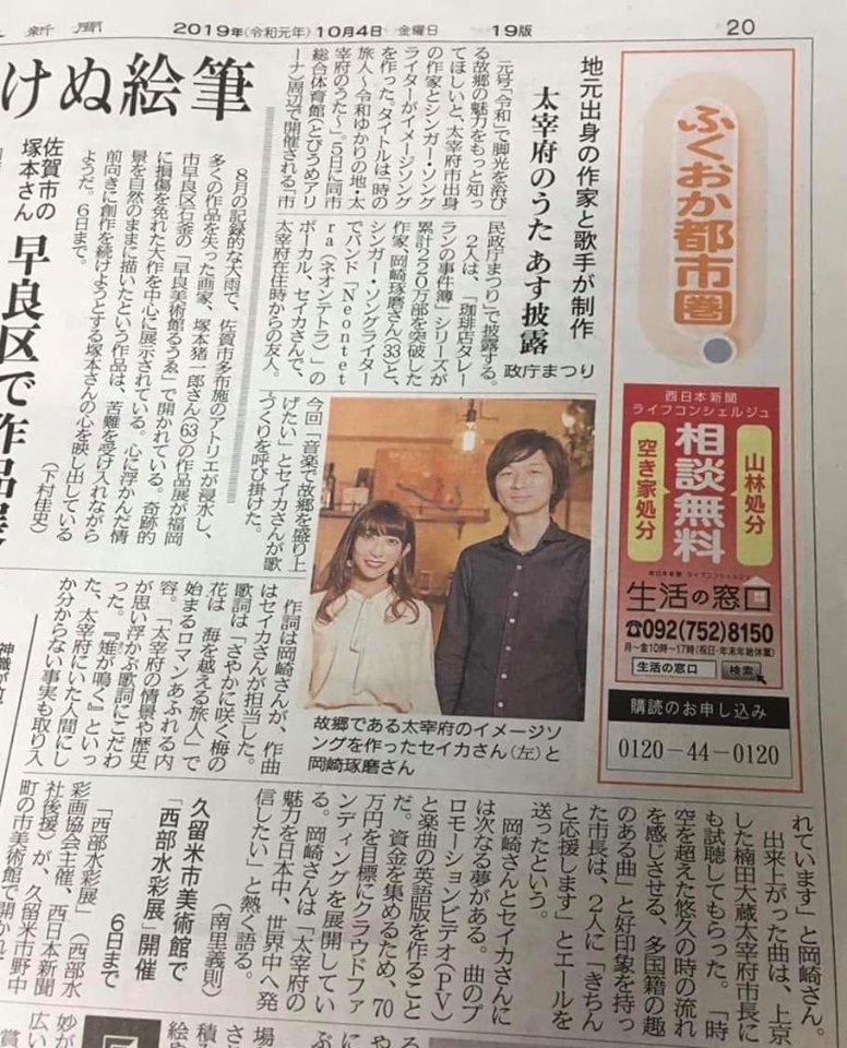 大変本市にゆかりのある元号ということで多くの方々から問い合わせやお祝いの言葉を頂き、16時からは緊急に大宰府政庁跡で記者会見も行わせて頂きました。新たな御代の弥栄を心から祈念致します。